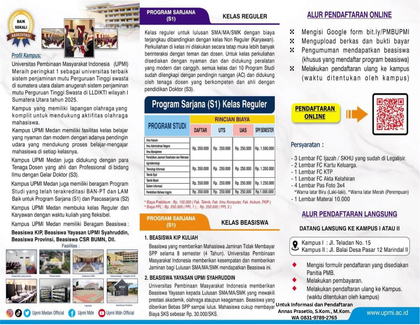 Universitas Pembinaan Masyarakat Indonesia (UPMI) Medan merupakan salah satu perguruan tinggi swasta terkemuka di Sumatera Utara yang berkomitmen mencetak lulusan berkualitas dan berdaya saing global. Sejak berdiri, UPMI secara konsisten mengembangkan pendidikan tinggi yang berorientasi pada penguatan ilmu pengetahuan, teknologi, dan seni.