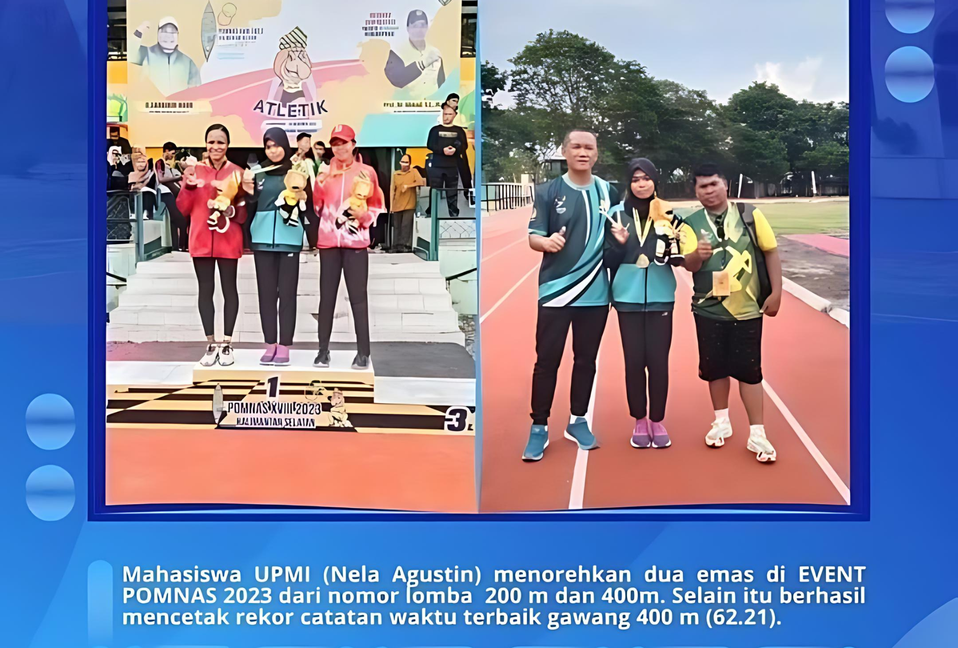 Tidak hanya Siska, prestasi luar biasa juga ditorehkan oleh mahasiswi UPMI lainnya, Nela Agustin. Dalam ajang yang sama, Nela berhasil meraih dua medali emas dari nomor lomba 200 meter dan 400 meter. Hebatnya lagi, Nela berhasil mencatatkan rekor waktu terbaik dalam nomor lari gawang 400 meter. Pencapaian ini membuat Nela menjadi salah satu atlet yang paling diperhitungkan di POMNAS 2023. “Rekor ini adalah hasil kerja keras tim, pelatih, dan dukungan penuh dari UPMI. Saya sangat bangga bisa mewakili universitas di kancah nasional,” ucap Nela dengan penuh kebanggaan.